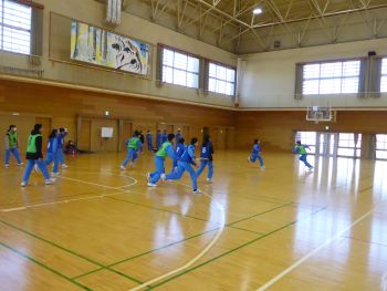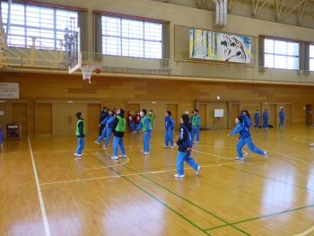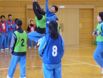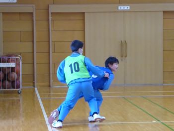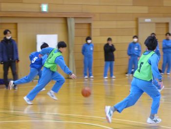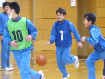 1年B組は、体育館の半面でバスケットボールの授業でした。B組も頑張っていました。