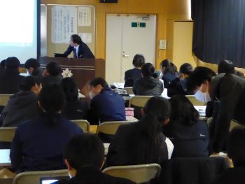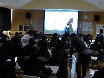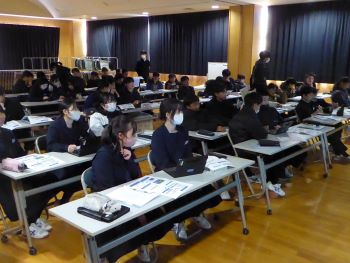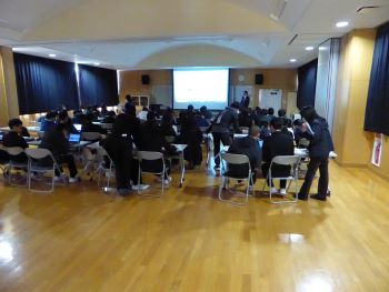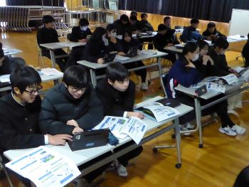 5,6校時は多目的ホールで2年生が修学旅行の学習をしていました。5月14日から16日の2泊3日の修学旅行が実りのあるものになるようグループ毎の学習です。今日は旅行会社の方を講師として、PCを使って詳しく説明をしてくれました。2年生も真剣に頑張っていました。