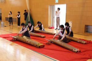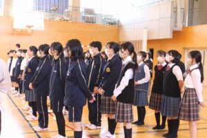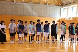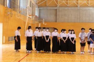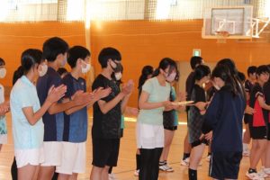 *応援団による応援と箏曲部の素敵な演奏ありがとうございました。美術部のうちわもとても素敵でした試合で使わせていただきます。僕たち男子バスケ部は支部優勝、県ベスト8の目標を達成できるようチーム一丸となって頑張りますので応援のほどよろしくお願いします。(2年)