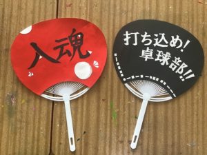 *箏曲部による入退場の演奏、美術部から頂いたうちわ、応援団の熱い応援ありがとうございました。この壮行会で学校全体で総体に取り組んでいるんだと思うととても心強いです。甲陵と言う名を背負いがんばってきます!応援よろしくお願いします。(3年)