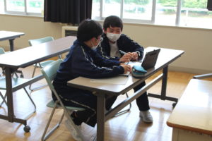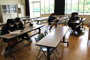 甲陵中学校の「CROSSサークル」は、朝や昼休みには全校生徒がいつでも学習でき、学年関係なく勉強を教え合える場です。通常は会議室で行っています。分からなかった問題は、周りにいる人にはもちろん、ホワイトボードに書き込むことで、その場にいなかった人にも教えてもらえるようになっています!(生徒会活動)