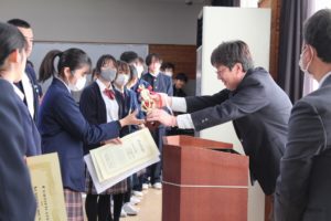 2024年12月25日 / 最終更新日時 : 2024年12月25日 甲陵中 ブログ 納めの会 12月24日 本年納めの会が開かれ年内はこれで学校もお休みです。夏休みからこれまで、100件を超える受賞者の皆さんのお披露目もされました。皆さんよいお年を!