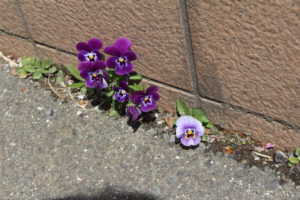 4月17日 玄関先の花たちは、いつも環境美化委員のみなさんがお世話にしてくれます。暖かくなり花たちも元気いっぱいです。しかし、それだけでなくアスファルトとタイルのわずかな隙間にも花たちがたくましく咲いています。ど根性ビオラですね。甲陵中生もこのようにたくましく育っていくはず?