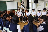 10月1日 1・2年生は国際交流ディと銘打って、4ヶ国(アメリカ・ブラジル・アルゼンチン・フランス)出身の方をお招きし、お話を聞いたり質問したりして理解を深めました。