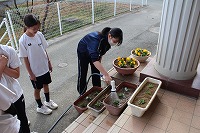 11月18日 冬に備えて、玄関前の花を植え替えました。環境美化委員の皆さんいつもありがとうございます。
