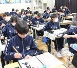 2025年12月9日 / 最終更新日時 : 2025年12月9日 甲陵中 交流・外部講師 書写の授業 12月9日 今日から講師をお招きして書写の授業がはじまりました。各学年とも書初め大会の課題に取り組んでいます。