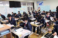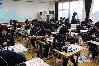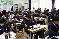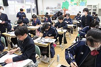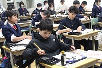 1月13日 冬休みが明けて最初の授業は「席書大会」です。みんな上手に書けたかな?