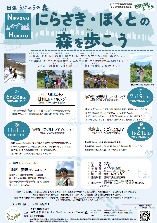問い合わせ先:特定非営利活動法人なかまフィールドうじゅうの森
