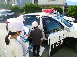 小春日和の今日、3年生が北杜警察署等へ見学に行く校外学習を行いました。パトカーの中を見せてもらったり、警察署の役割を教えてもらったりしました。また、キースへリング美術館を見学したり、いこいの杜で地雷除去機を見てきたりすることもできました。