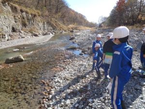 北杜市は、星見里市とも言うように星もきれいですが、フォッサマグナもあって、地層にも希有な地域です。理科にとっては豊富な教材を有している地域です。今日は、6年生が、大武川の河原・上三吹の溶岩・白州グランドキャニオン・下蔦木の地層まで、地層に関する実地見学をしてきました。興味深く観察している児童、地域の自然に誇りをもった児童、多くのことを学ぶことができた学習となりました。