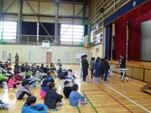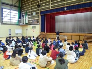 ニュースで話題になっている『大谷選手のグローブ』がついに武川小にもやってきました。韮崎高校野球部キャプテンだった校長先生から、今朝の学校朝会で大谷選手の思いやその使い方などを紹介してもらいました。学年で順番に使用した後、中休み等、自由に使って野球に親しんでほしいと思います。「野球やろうぜ!」