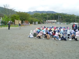 今日は、2校時終わりに避難訓練がありました。図工室付近から火災が発生したことをを想定して、素早く安全に校庭まで避難する訓練を行いました。ハンカチを口にあて・・・「おはしも」を守って・・・校長先生に避難の仕方をほめてもらって解散しました。反省点を確認し、より安全を高めていきます。