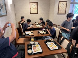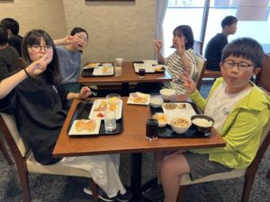 充実した学習、六年生修学旅行もついに最終日。朝からしっかり食べて暑さに備えます。