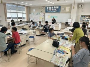 今日は、5年生19名の裁縫実習がありました。針と糸を使って、縫う練習をしました。今日も学校応援団の方に2名来ていただき指導のお手伝いをしていただきました。地域の方がボランティアで学校に来てくださるこのありがたさ・・・当たり前ではないこの状況、ただただ感謝です。