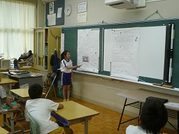 今、各学年で「夏休み自由研究」発表会が行われています。どの市の水がおいしいのか、紙ヒコーキは材質や重さによって飛ぶ距離が違うのか、江戸時代の武川衆について等々、それぞれの発表をしました。(読書感想文に取り組んだ子もいます。)長い夏休みの間に、ご家庭の方の協力も得ながら学習できたようです。きちんとまとめることはとても大変だったと思いますが、発表後に拍手された児童の顔を見ると、充実感のある学習となったことが分かりました。