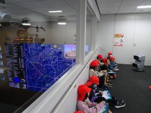 今日は、3年生が県庁の防災新館にある県警指令本部へ見学に行きました。県民の安全を守ってくれている様子が分かりました。また、同じ館内にあるジュエリーミュージアムでも水晶のストラップ作り体験を行いました。晴天の中、お弁当を食べることもでき、素晴らしい体験をした1日となりました。
