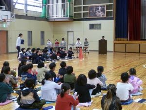 明日から4連休という金曜日。とても大事な児童会行事「児童総会」がありました。初めて参加した3年生もしっかり意見を言っていました。どの学年も活発に意見を出し合い、今年度は『育て! 武川小 ~全校児童の笑顔の芽~』というテーマに決まりました。みんなで楽しい一年にしていくという気持ちが感じられました。