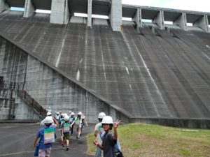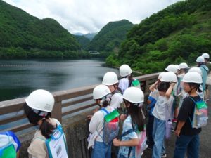 今日は、4年生が社会科見学に行きました。北杜市の塩川ダムへ行ってきました。上から見たり説明を聞いたりするだけではなく、実際にダムの中へ入ってどのように作られているかということも学習してきました。「外は暑いけど、中は寒かった・・・」「ダムが大きくてびっくりした・・・」といった感想が聞かれました。