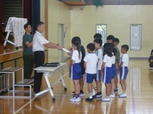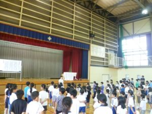 8/29 (金) 『学校朝会』学級役員任命・朝の合唱