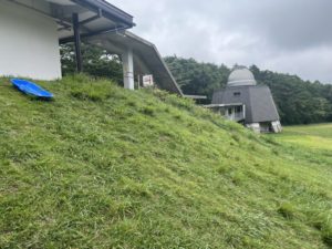 プラネタリウムの後、雨がやんで、大興奮の草滑り、、、