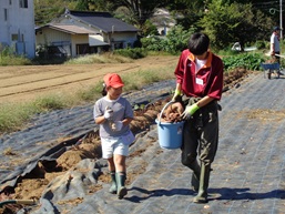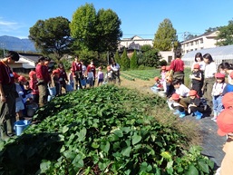 例年、1年生は北杜高校との交流事業を行っています。今年も『サツマイモ収穫』の体験をさせてもらいに行ってきました。今年も大きいお兄さんお姉さんに優しく教えてもらって、楽しく交流できました。「引っ張って大きなサツマイモが出てきて楽しかった」「クリスマスリース作りも楽しかった」「ツルってどこまで伸びているんだろう」・・・なんていう感想が出ていました。