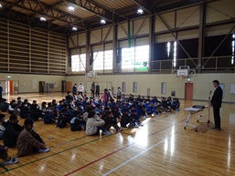 6年生を送る会や卒業式を控えたこの季節、感染拡大を防ぐ手立てを学校では可能な限り行っています。湿度調整や給食時の黙食等、児童の意欲を削がないようにバランスにも考慮しつつ、学校一丸となって頑張っています。そんな中、武川小学校ではインフルエンザも流行が過ぎ、「朝の体力づくり」や「学校朝会表彰」等もできるようになってきました。今日は「席書大会」の表彰を行いました。名前を呼ばれ、「はい」と返事をしていました。教室でもほめられて嬉しそうでした。