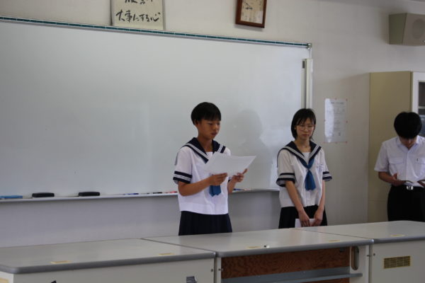 勉強、部活、瀬音祭や音楽発表会などの学校行事、整理整頓や2分前着席等の生活面など、力を入れて取り組みたいことを力強く発表していました。