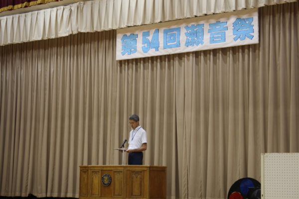 まずは、開祭式。校長先生の話に始まり、生徒会長の話、各部門長からの話、ポスター・シンボルマーク表彰に続き、オープニングセレモニーで瀬音祭が幕を開けました。