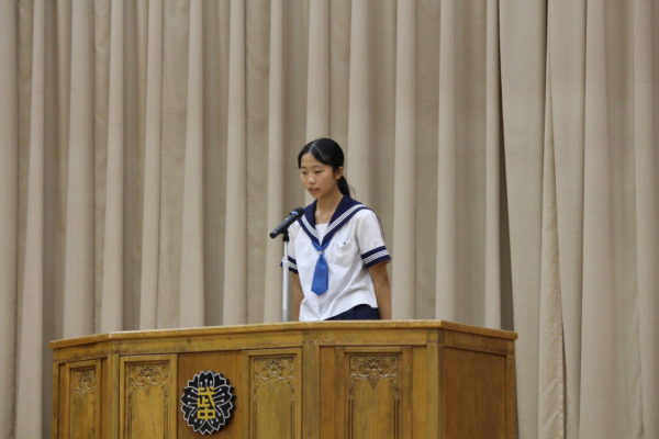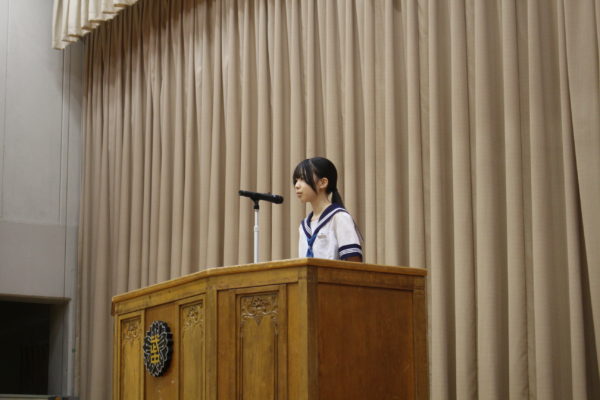 発表部門の一番最初は、8月に行われた「北杜警察署管内防犯弁論大会」で第2位となった生徒が、会場のみなさんの前で弁論を披露しました。