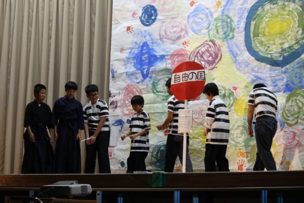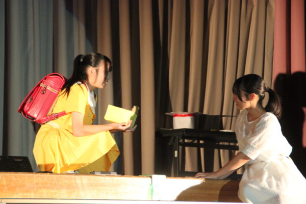 さっきまで役者として舞台に立っていた生徒が気づくと照明係をしており、また舞台に目を移すと役者を・・・と、2年生も少ない人数ながら工夫をしながら劇を創り上げていました。