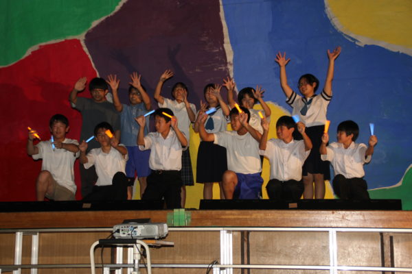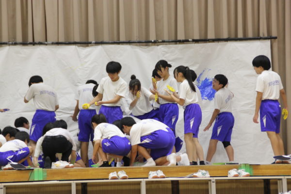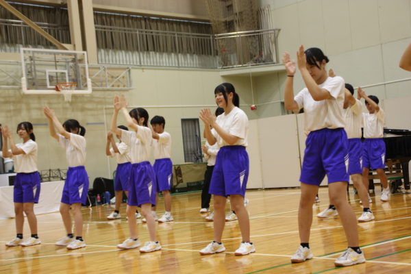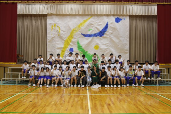 最後は全校生徒による全校表現。ダンス、クラッピング、うちわアート、そして、全校生徒の手形によるシンボルマークの作成など、46人が一つになって全校表現を完成させてくれました。
