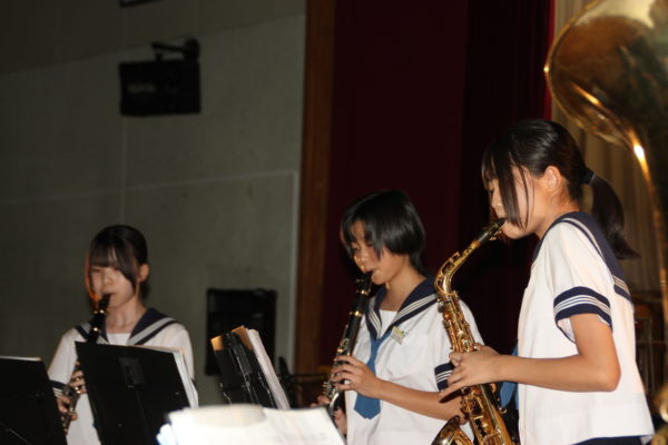 昼食をはさんで、午後の一番は吹奏楽部の発表でした。県吹奏楽コンクールで銀賞を獲得した曲を披露したり、会場を盛り上げてくれる曲を演奏したり、今回で最後のステージとなる3年生のソロを披露したりと、時間があっと言う間に感じられる吹奏楽部の発表でした。