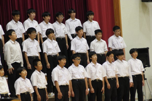 最後は武川中学校の伝統でもある「全校合唱」。今年は「ハレルヤ」と「地球の詩」の2曲を披露しました。わずか46名の全校生徒ですが、一人ひとりが思いを込めて歌い、会場に来て下さった方々に精一杯の合唱を披露することができました。