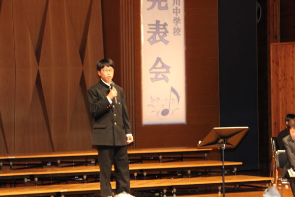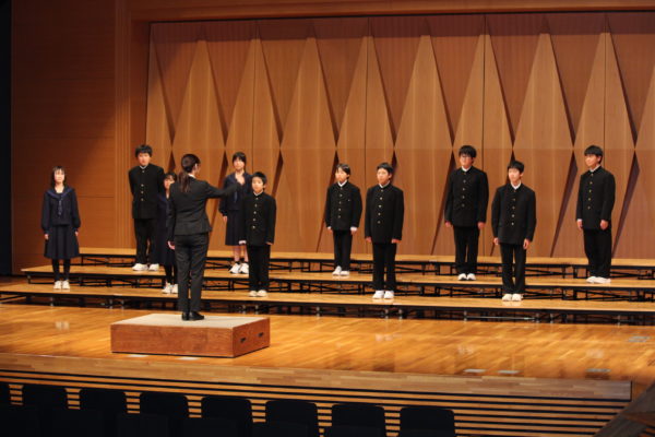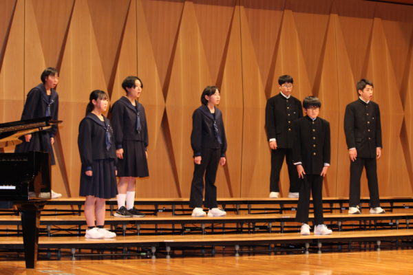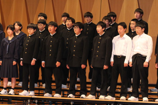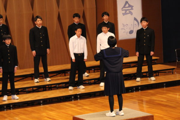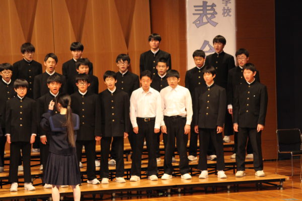 最後は全校生徒による、全校合唱。今年度は、「櫛形中・青洲高校との合唱交流会」「武川小学校との合唱交歓会」「武川地区文化祭への出演」等、たくさんの外部への発信を行ってきました。その中で、自分たちの合唱への自信と、多くの方に披露することの楽しさを、身をもって感じてきました。「言葉にすれば」の最後の部分、各パートの音が順々に重なり合っていく部分のハーモニーや、「大地讃頌」の最後の「あぁ」の部分の響きは、全校生徒が繰り返し練習を重ねてきた成果を、最後の最後にしっかりと披露することができました。