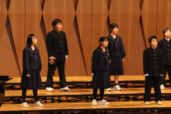 2度目の挑戦となった2年生。夏休み前から曲を決め、コツコツと練習を重ねてきました。給食準備中や帰りの会後にはいつも2年生の大きな声が校舎中に響き渡っていました。2年生は地域の方に伴奏をお願いし、練習の中で仲間と築き上げてきた音楽の「揺れ」や「間」を上手に表現していました。