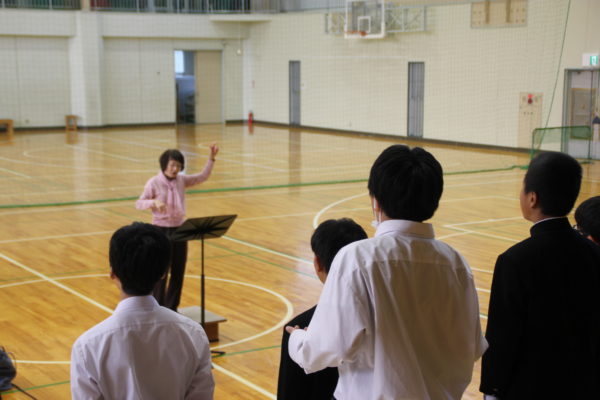 「合唱」は本校が自信をもって特色として挙げている活動で、朝活動や給食準備中、放課後の時間など、時間を見つけては生徒たちが主体となって取り組んでいますが、専門の先生に指導していただく機会は限られているので、とても貴重な時間となりました。