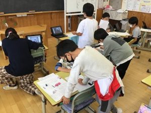 3年生は、タブレットを使っていろんな学習に取り組んでいます。