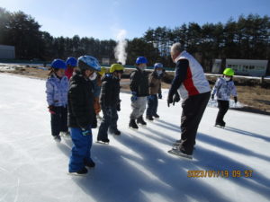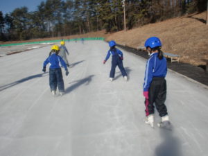 スケート教室に行ってきました。お天気にも恵まれ、気持ちの良い冬空の中、スケートを楽しみました。最初は、スケート靴を履いた途端によろけてしまう子がいたり、スケートリンクに上がると生まれたての小鹿のように足がヨロヨロしてしまう子がいたりしたのですが、滑っていくうちに徐々に氷に慣れて、次第に一人で滑れるようになりました。何度も転ぶうちに一人で滑れるようになり、楽しく滑ることができました。