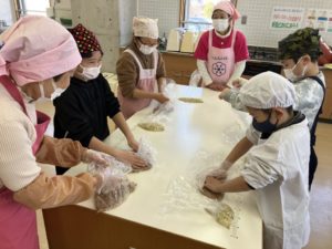 3年生は,自分たちで育てた大豆でみそづくりをしました。虹の会の方と食生活改善推進委員の方の指導でみそを仕込みました。