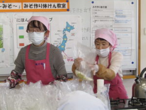 しっかり糀を混ぜ合わせ,その後に煮た大豆を入れて「おいしくなあれ」「優しい味になあれ」と,願いを込めながらこねていました。