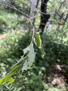 オオムラサキセンターへ行ってきました。今の時期は,オオムラサキの幼虫「ムーちゃん」がさなぎになる直前の時期で,大きく育ったムーちゃんがたくさんいました。自分の力でムーちゃんを見つけることができた子が多く,愛着を感じていました。 身近な地域の自然に興味や関心をもつきっかけになってくれたら嬉しいです。