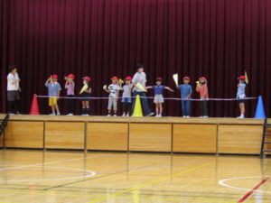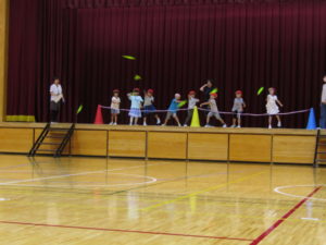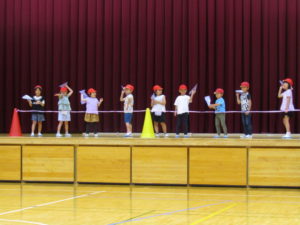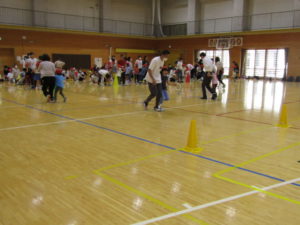 1年生の親子学習会では,紙飛行機大会と親子二人三脚をしました。紙飛行機大会では,お家で練習してきた折り方と飛ばし方で,とても上手に飛ばせていました。親子二人三脚では,親子で息を合わせている様子が見られました。大いに盛り上がり,とても楽しい会になりました。