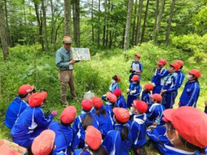 KEEP協会の鳥屋尾さんを講師に招き、学校林にある植物、生息している生き物、森林の役割等について教えていただきました。