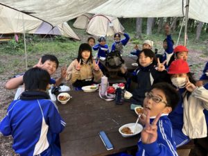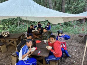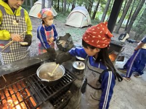 2023年10月5日 / 最終更新日時 : 2023年10月5日 長坂小 5年生 自然教室「野外炊事」 野外炊事を行いました。火をつけたり、野菜を買ったり、お米を炊いたり、それぞれの役割をきっちりとこなし、美味しいカレーライスが完成しました。全てを自分たちで作った夕食。5年生は、とても満足そうです。 いただきまーす!