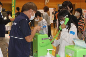 日本公衆電話会様を講師に招き、公衆電話や災害用公衆電話、災害用伝言ダイヤルの使い方を体験を交えながら親子で学ぶことができました。