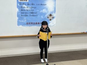 今回は、1年生、2年生、6年生の代表児童が冬休みの思い出や、3学期に向けた意気込みを発表しました。1学期や2学期に比べると短い3学期ですが、1年間のまとめとして大切な時間になると思います。子どもたちの意気込みが実り、充実した日々を過ごしてもらいたいです。