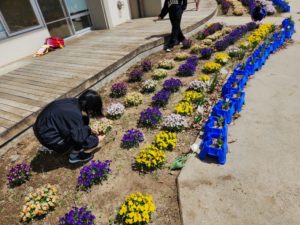 美しい花壇を中心になって保ってくれているのが、栽培委員会の5・6年生です。毎週金曜日の常時活動の時間を中心に、草取りや花の植え替えに取り組んでくれています。