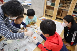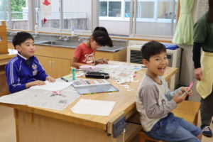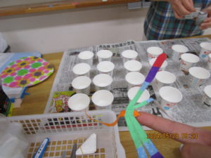 ふれあいタイムで折り染めを楽しみました♪
