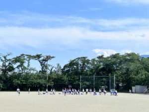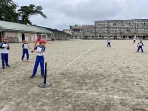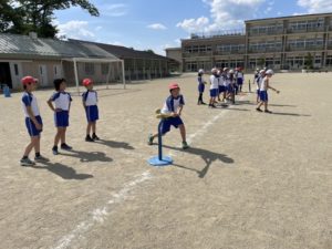 4年生の体育では、Tボールをしています。今日も、晴れ渡る青空の中、子どもたちの元気な声が校庭に響き渡りました。キャッチボールもよく取れるようになってきました。「腰をまわそう!」「ボールをよく見よう!」など,子どもたち同士でアドバイスし合う姿も見られ、めきめき上達しています!今日はシャトルランもあったので、たくさん汗を流せました♪