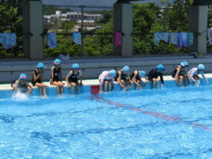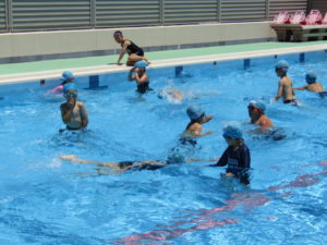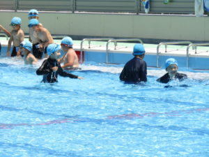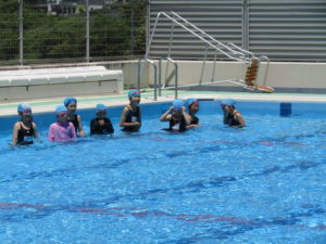 今日の活動は、足をバタバタさせたり、頭から水をかぶったりといった活動が中心でした。冷たい水の感触を感じながら、歓声が上がりました。楽しい時間を過ごすことができました。